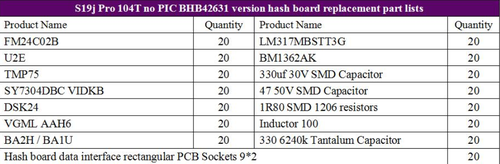 S19j Pro 104T no PIC BHB42631 version hash board maintenance BOM lists: